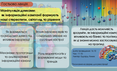 ДетальнішеСучасний світ перенасичений дезінформацією в усіх сферах нашої життєдіяльності. Щоб уміти розрізняти нав’язане штучне уявлення і справжню сутність явищ, подій та речей, потрібно знати процеси...