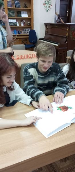На початку відвідування студенти познайомилися із представниками бібліотечного персоналу. Гід Іванова Інна Михайлівна розповіла про історію бібліотеки, основні напрямки її роботи в сучасності та організації діяльності закладу під час війни.