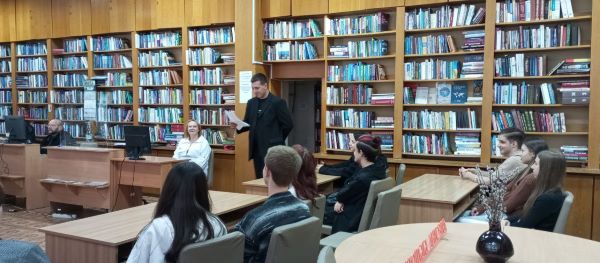 Співробітник бібліотеки науковець А.Горовий більше детально розповів студентам про тематичні виставки, рідкісні бібліотечні видання, різноманітні краєзнавчі джерела, а також розповів про особливості роботи під час відключення енергопостачання.