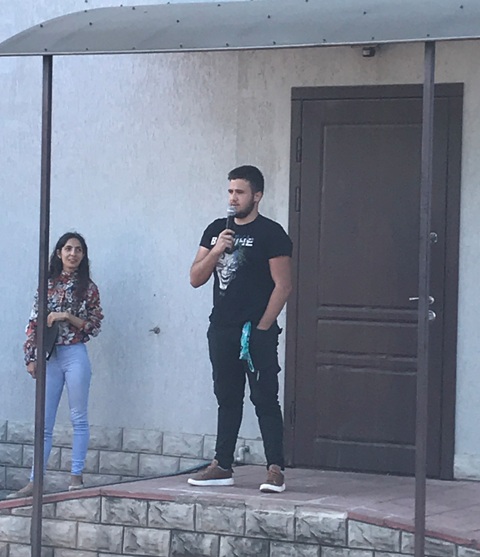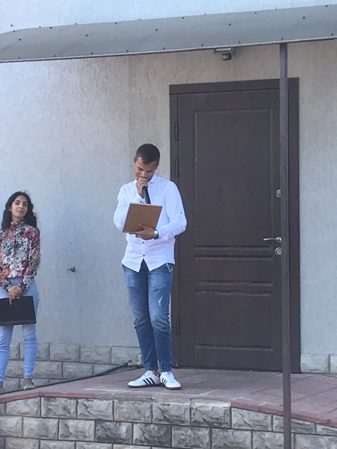 Наступним взяв слово студент четвертого курсу, чарівний та неперевершений Лука Кадагішвілі. Хлопець, який під час навчання зміг завоювати симпатії всього колективу, привітав першокурсників із початком навчального року та побажав всім удачі.