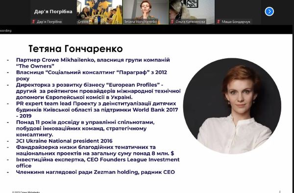 Естафету привітання підхопив Дмитро Михайленко, керуючий партнер Crow Mikhailenko, Президент Асоціації податкових консультантів, Член наглядової ради Палати податкових консультантів, Голова Комітету підприємців з податкових питань при Торгово-промисловій палаті України. У своїй доповіді Дмитро Олександрович передбачив активну співпрацю компанії «Crow Mikhailenko» з Київським інститутом бізнесу та технологій та відзначив, що відновлення України не є проєктом майбутнього, а відбувається саме зараз, і задачею всіх економічних суб’єктів є активізація та сприяння конструктивній відбудові.