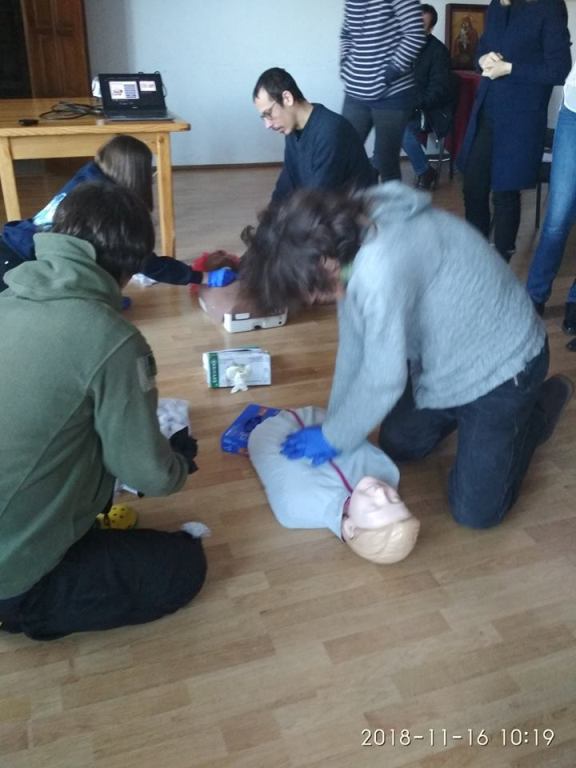 Майбутні соціальні працівники, економісти та програмісти взяли участь у тренінгу із парамедицини, який організувала Всеукраїнська Спільнота парамедиків. Студентам показували прийоми надання першої невідкладної медичної допомоги, дозволивши при цьому попрактикуватися на макетах. Демонстрація практичних дій супроводжувалася теоретичними роз’ясненнями, що дозволило кожному учаснику тренінгу виробити власний системний алгоритм дій із надання першої допомоги.